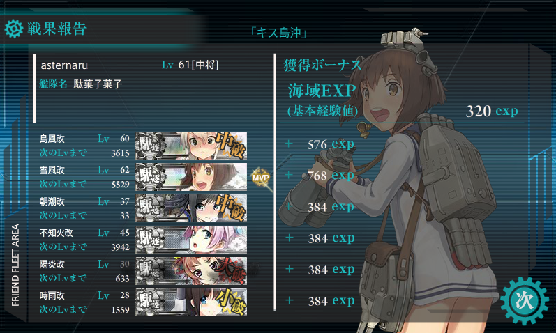 特に駆逐艦軽巡のレベリングをするときに旗艦にして対潜装備で固めれば割とMVP取ってくれるので