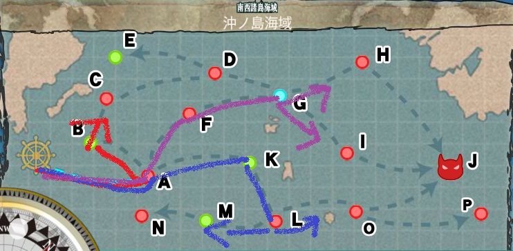 紫ルートは小ハズレ途中から赤ルートに合流出来るもののJに戦艦の可能性があるので通らないに越したことはない