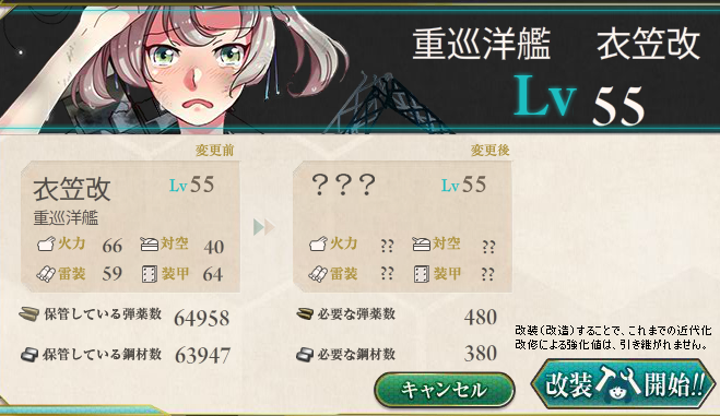 今まで三隈orランキング報酬でしか手に入らなかったので、欲しい人は衣笠を育ててみてはいかがでしょう。