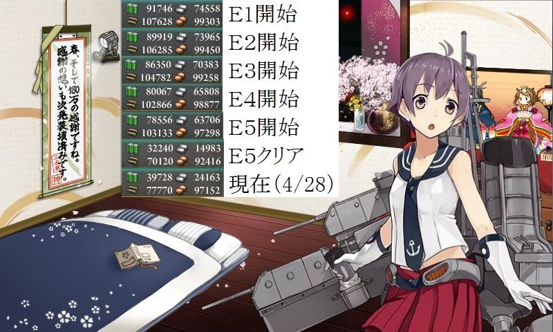 消費資源で言えば秋イベの矢矧掘りに匹敵してます(。ŏ_ŏ)