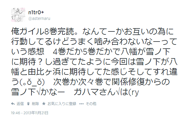 というか7.8巻だと雪ノ下√だなーとか思ったけど