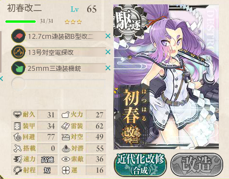 今は対空値がほぼ死にステだから他の駆逐改二勢よりは優先度低めかな