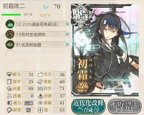 時雨より火力は低いもののカットイン狙いなら初霜のが良いのかな