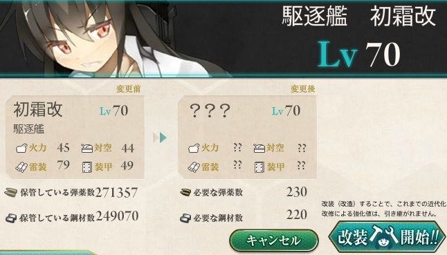 すごい勢いでレベルがあがって初霜改二に出来ました