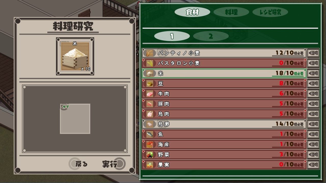 進めるとサブ食材が1つ2つと足せるようになっていくので料理の幅が増えるんでしょう