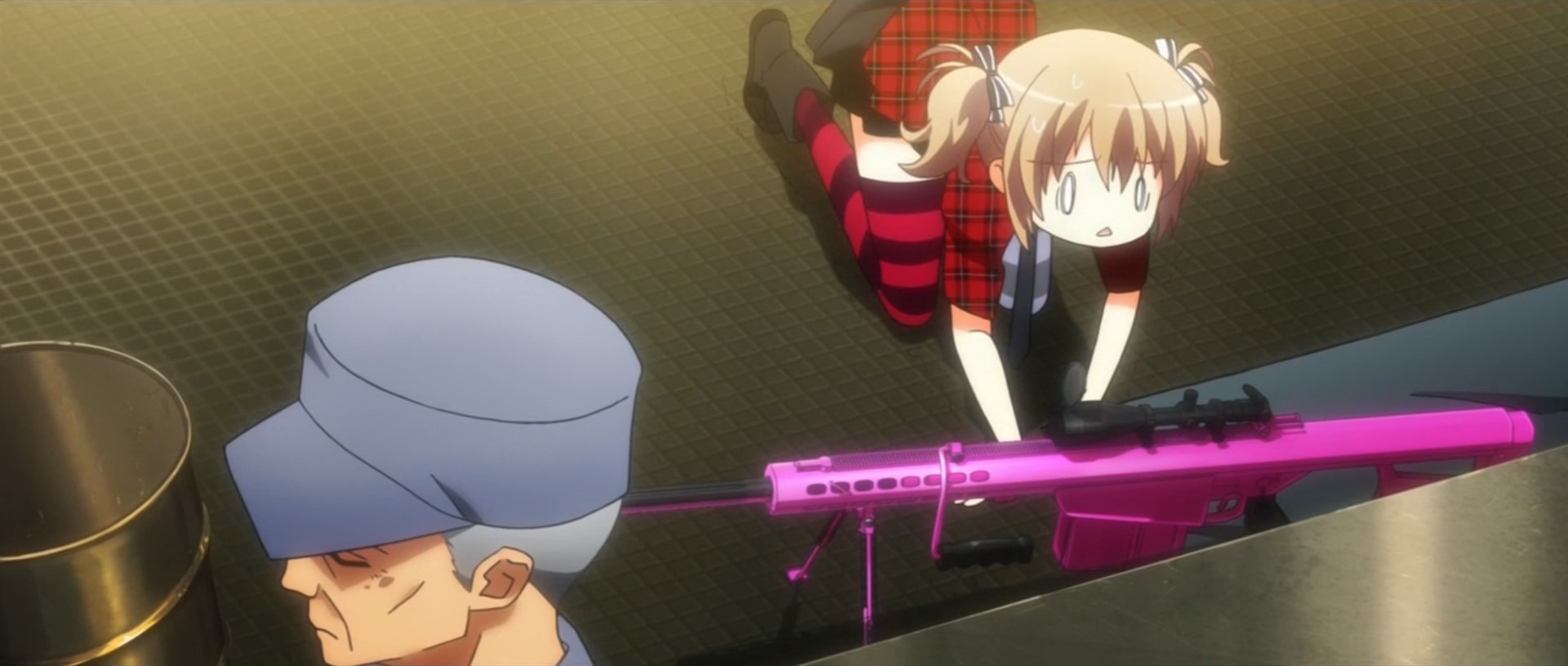 おもちゃ(ピンクの対物ライフル)を受け取りに行く薪菜と幸