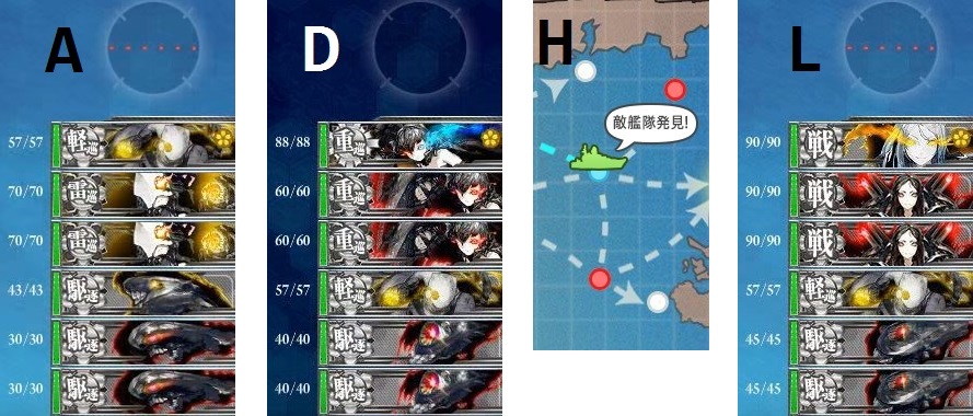 ルートはA-D-H-Lの赤ルート で固定されるはず(軽巡1駆逐3or駆逐4で固定?