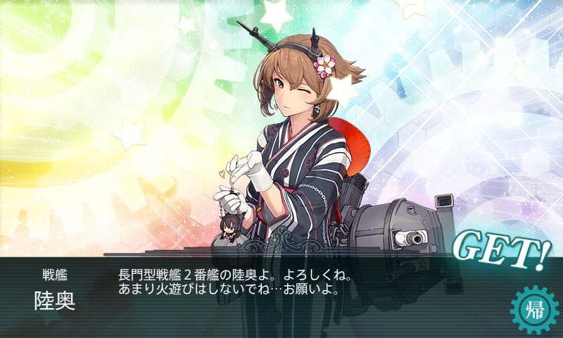 その代わりと言ってはなんですが長波 陸奥を浴衣modeで見れました₍₍ (ง ˘ω˘ )ว ⁾⁾陸奥は2-4でもドロップ