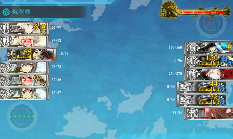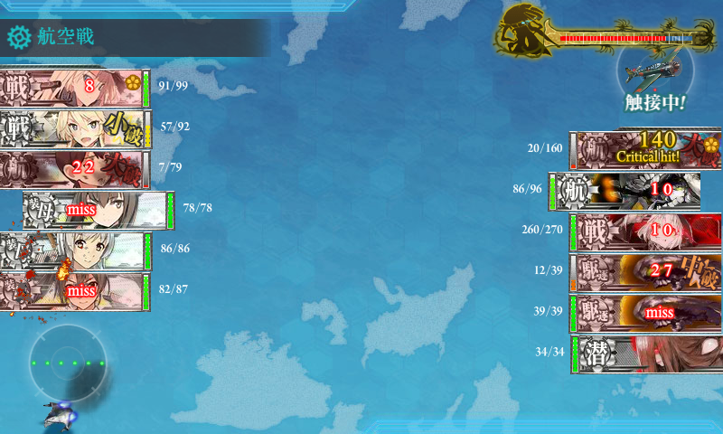 ボス 同航戦 航空戦で加賀が大破 代わりに旗艦に140damage