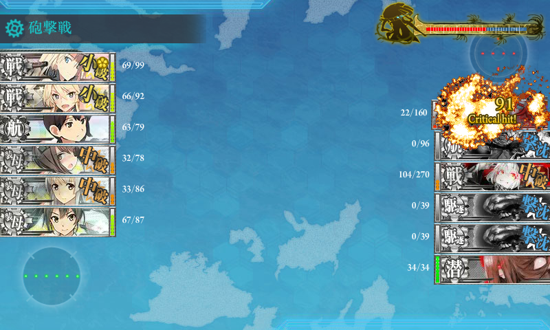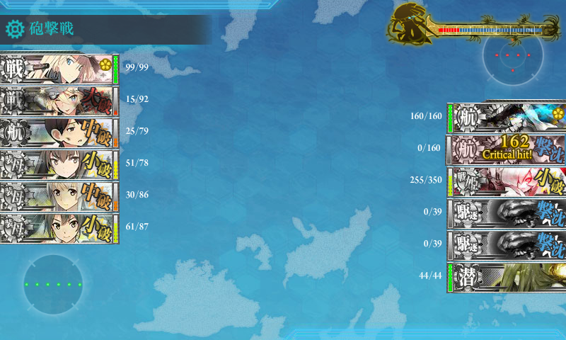 ボス 同航戦 航空戦で加賀が大破 代わりにこっちも3隻撃破したのでまぁ良し