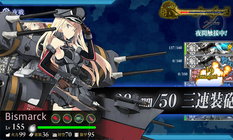 もうちょっとで昼戦で終わったんですがギリギリ足らず夜戦へ 最後はビス子