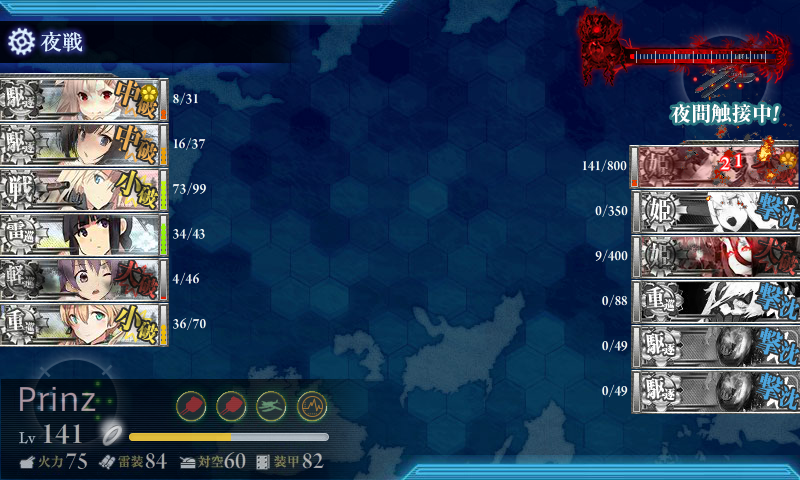 プリンツが大破したため特攻無しでの夜戦突入となりましたが
