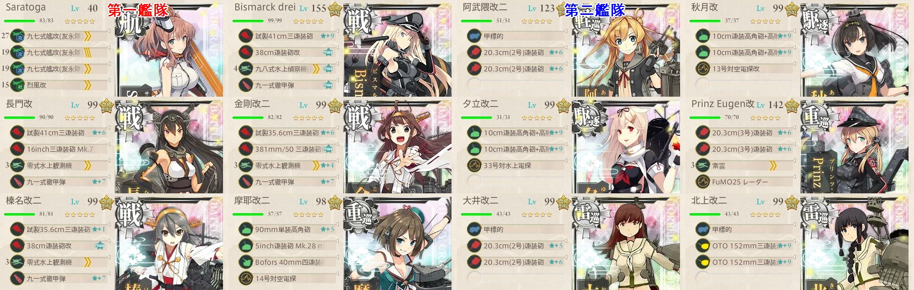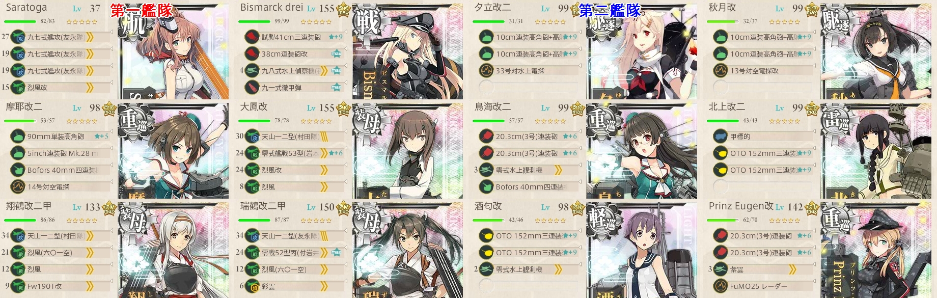 私は攻略後に「朝風」掘り+「Saratoga」育成をしながら装甲破砕ギミックの検証をしてたのでこの編成
