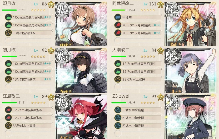 朝潮がカンストしたので対潜役にZ3 まぁ別に対潜役いらない気はしますけど_(:3 」∠ )_