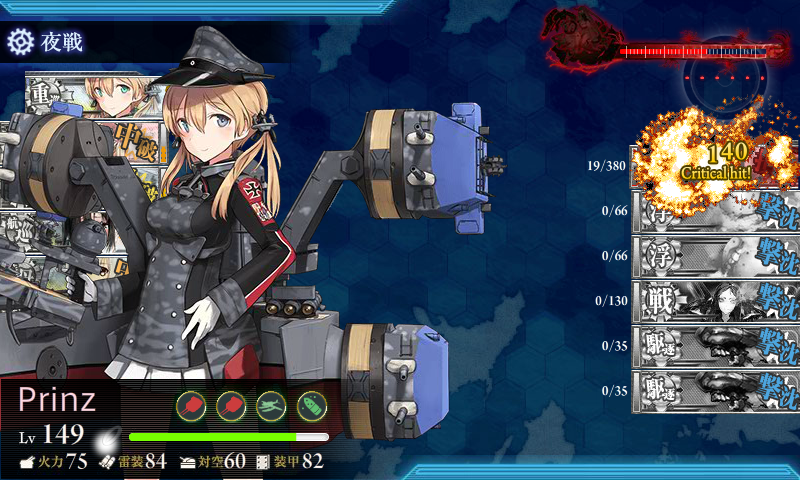 今月は港湾棲姫が削り段階でも当ててくる|д・)まぁ夜戦で倒せるからいいんですけどボロボロ 最後はPrinz