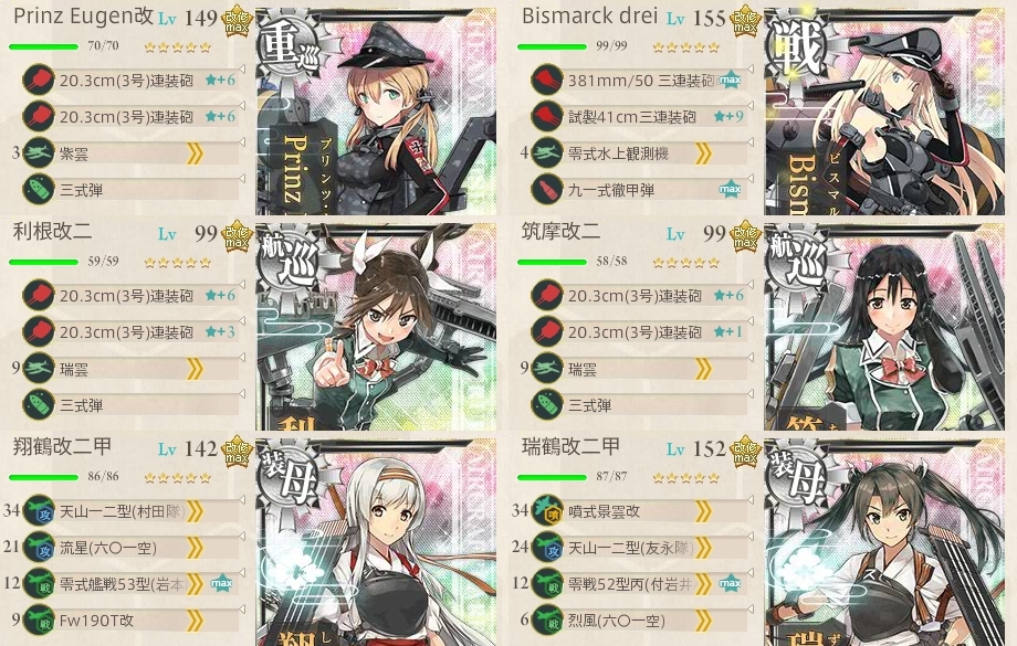 道中で被害も出てPrinzも即大破 随伴艦も残ったのでこれは無理だなぁ と思ってたら利根がスナイプ成功 セーフ