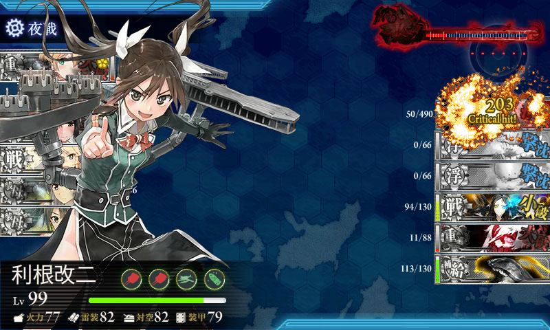 早い段階で港湾棲姫だけに出来たんですけど昼戦ENDならず 最後は夜戦で利根