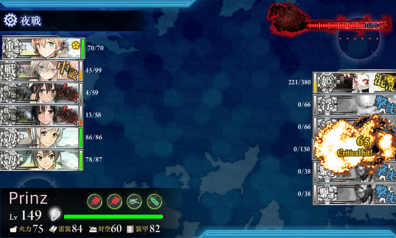 ボス 同航戦 噴式強襲:港湾棲姫に45damage 航空戦でPrinz大破