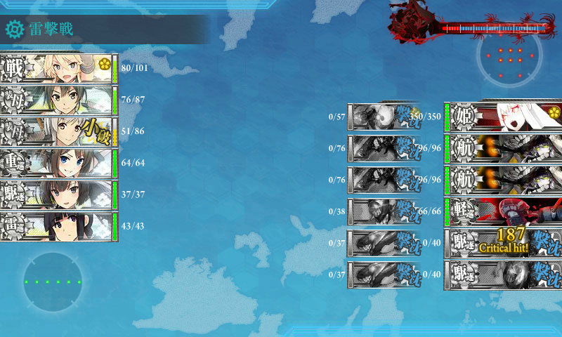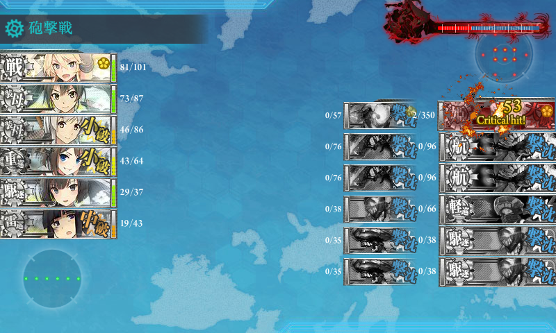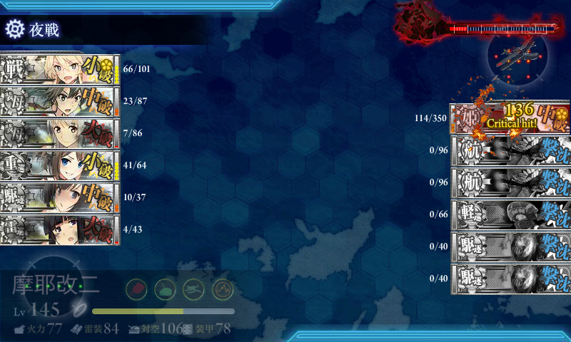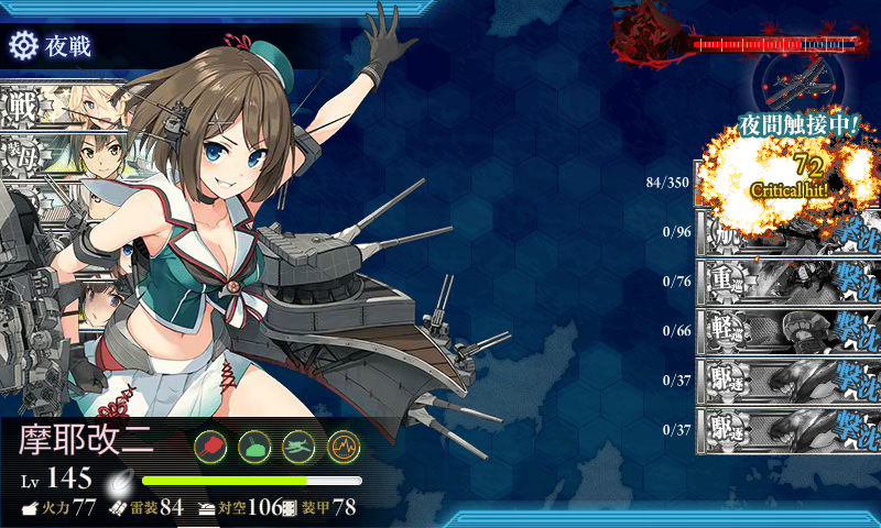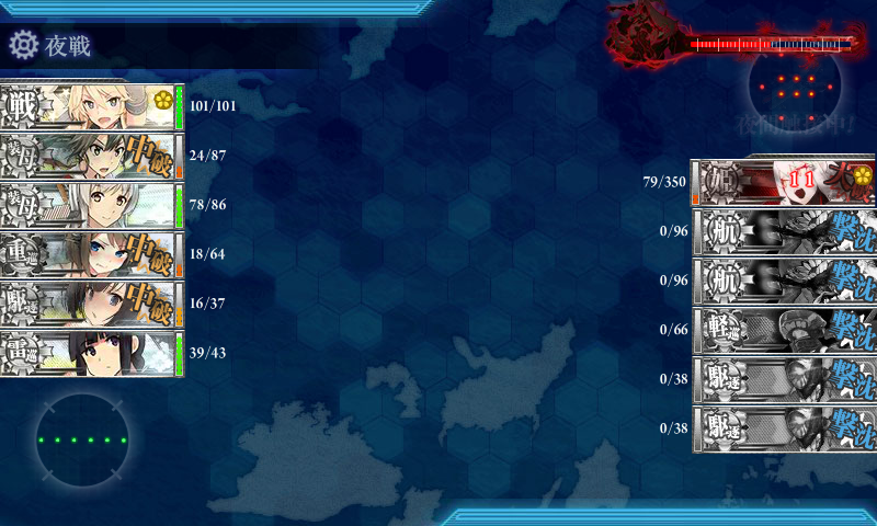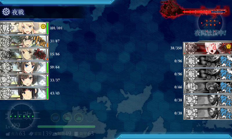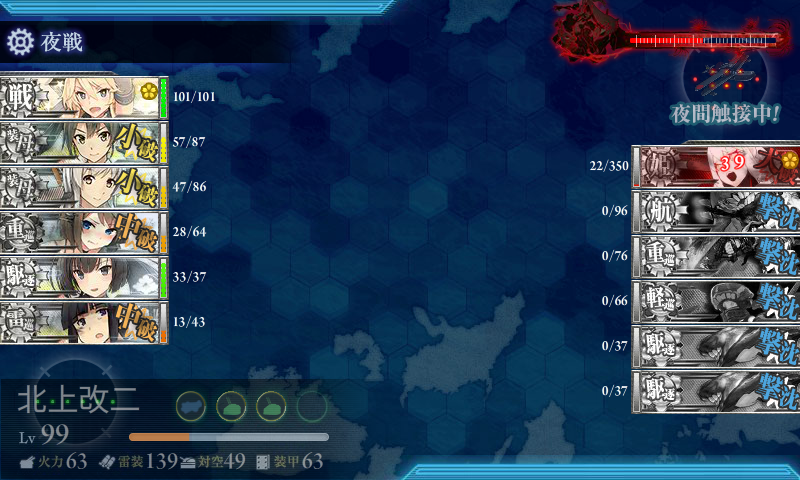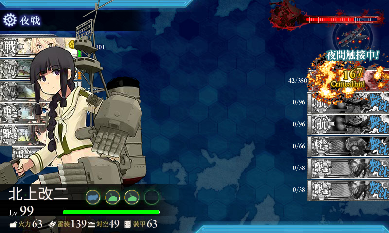 基地航空隊がしょぼくて砲撃戦も微妙で随伴艦が削りきれず(・×・)北上の至近弾がなければなぁ……