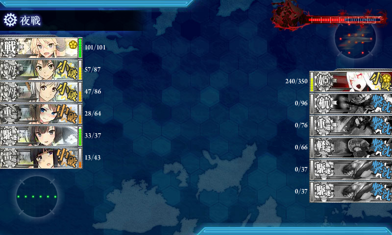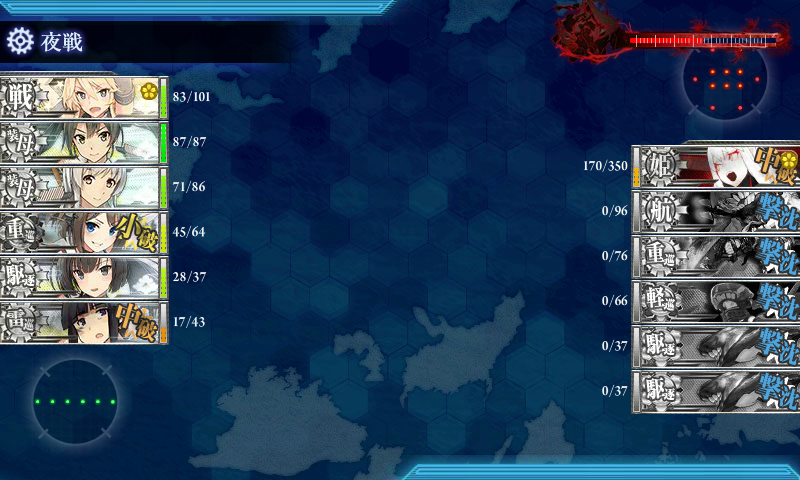 ここまで夜戦で落としきれないなんてことが起こるとは予想してませんでした(´・ω・`)
