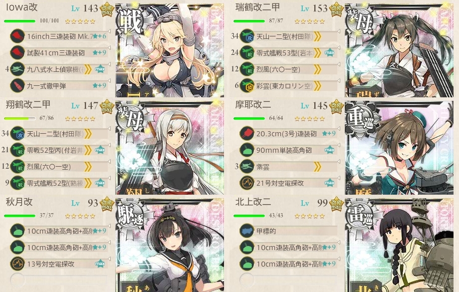 どれも「Iowa/摩耶/北上」がもう1発まともに当ててくれたらいけてるんですけどねぇ_(:3 」∠ )_