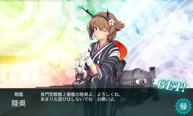 今回やたら「陸奥」がドロップするなーと思っていたら最後に「長門」もドロップしました(・◇・)