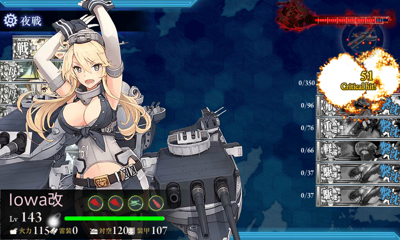 夜戦での命中率が課題ですかねーIowa砲+GFCSにすれば改善されるのかなぁ_(:3 」∠ )_