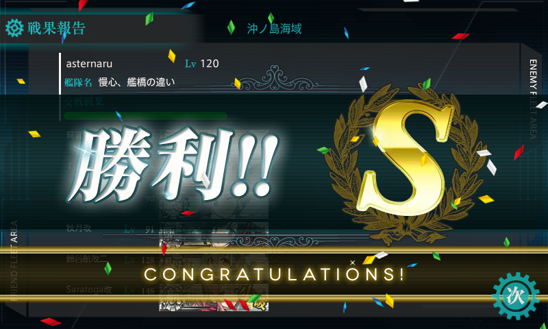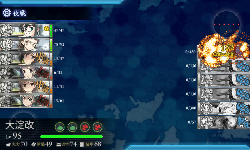 下4人が被害を受けてますが大淀が1人で260↑削ってS勝利。まぁ基地航空隊で削ったのも大きいかなー