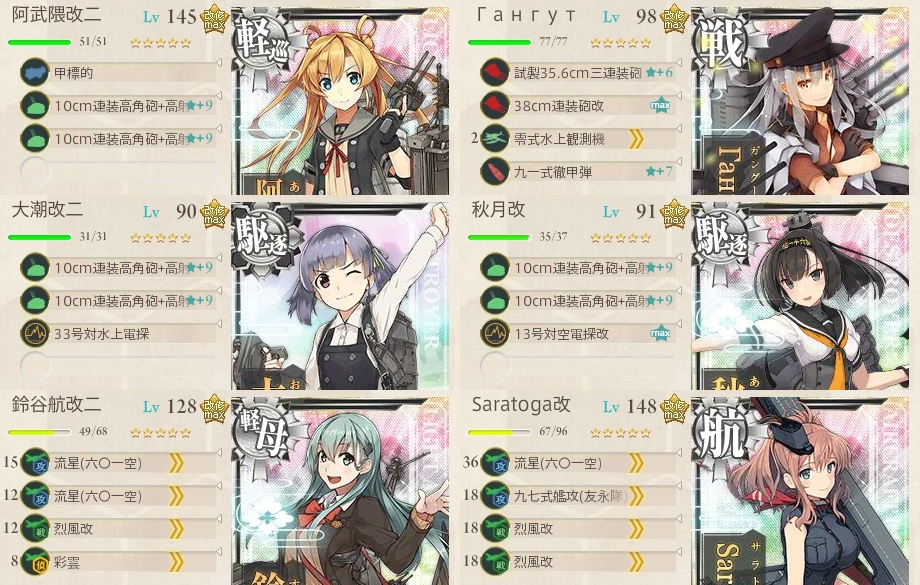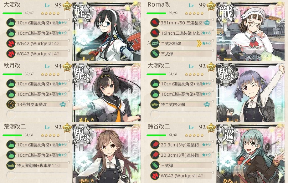 いつもならルート固定にはまず選ばれない海外艦娘達ですが今回は温存した方が良さそうですね。