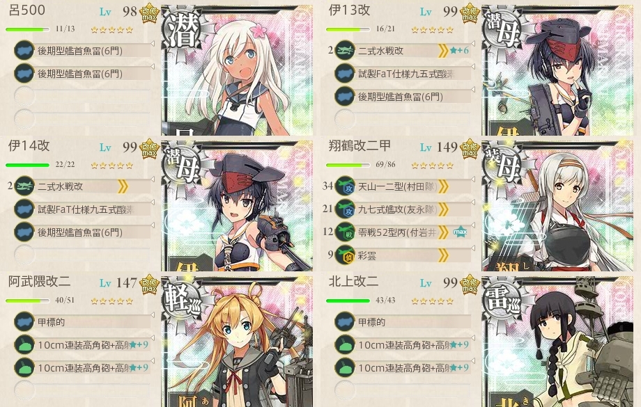 3種の編成を試してみましたが一長一短ですかねーバケツが充分なら潜水艦6編成が一番気楽なのかなー