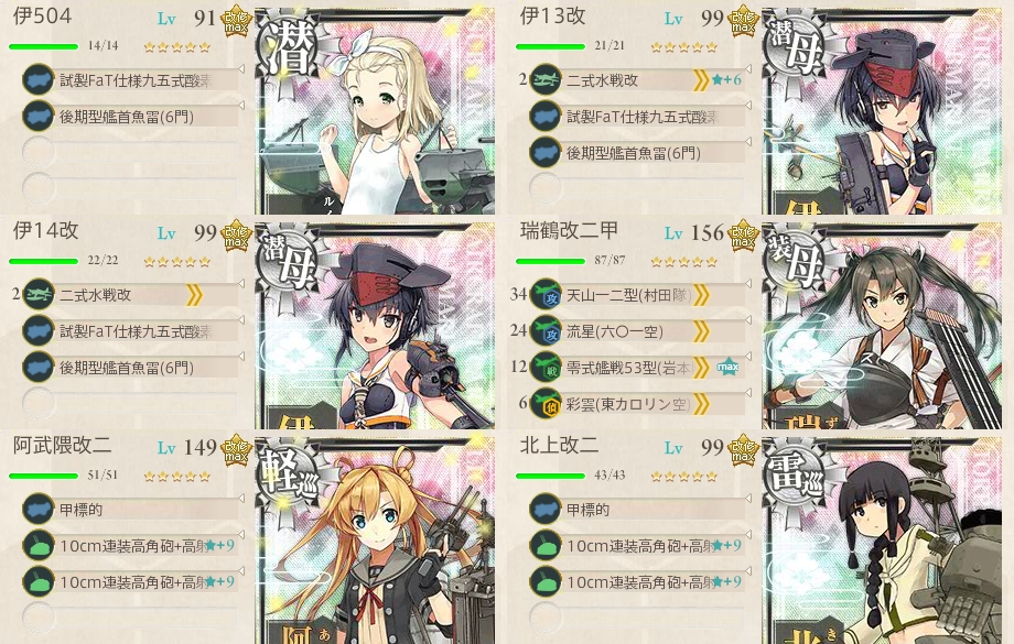 道中3戦をほぼ無傷で素通りして開幕で3隻落としての余裕のS勝利。最後は伊13の魚雷CI₍₍ (ง ˘ω˘ )ว ⁾⁾