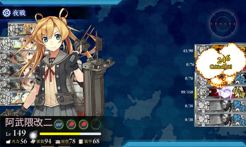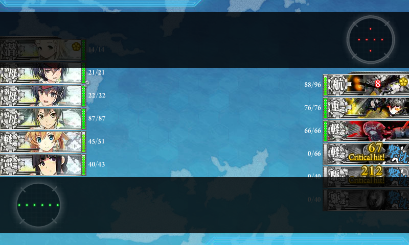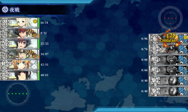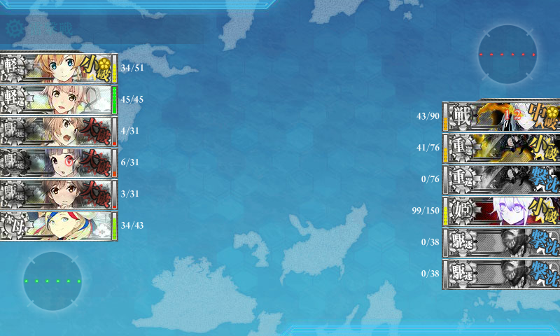 今回は基地航空隊がしょぼくて軽巡1砲台小鬼1しか落とせなかったのでこっちも結構ぼろぼろ_(:3 」∠ )_