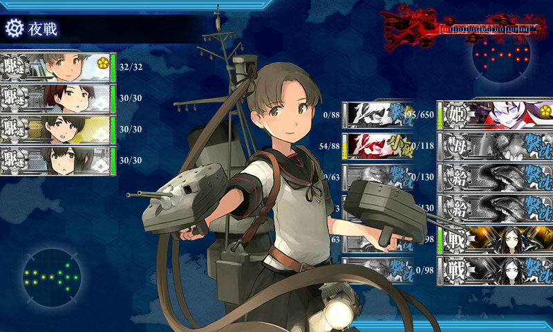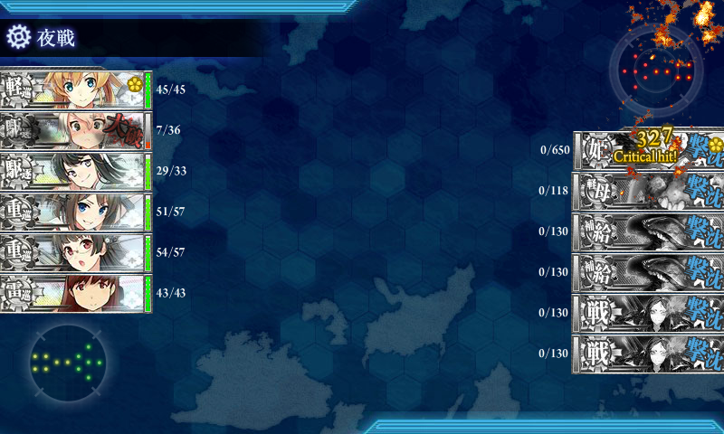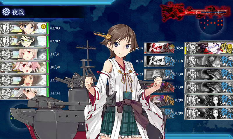 夜戦で「護衛棲水姫(-壊)」からの攻撃がなければこちらの火力要員が追加で潰されることはまずなくなります。