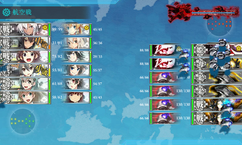 制空値は500ちょっとだったかな?完全艦戦キャリアーにしても[O,Q]マスが強編成だとで航空均衡止まりだったので