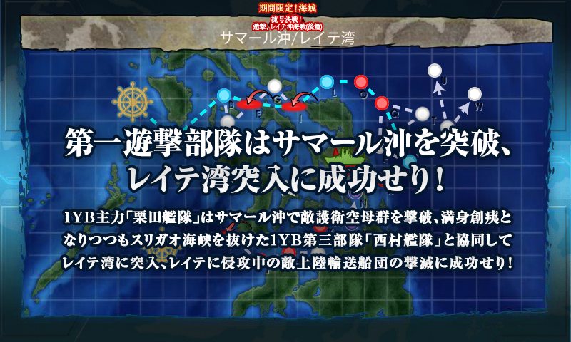 E2と同じくスリガオ海峡最奥へ辿り着いてA勝利↑を取るだけ、とメインは「サマール沖海戦」だからかあっさりですね。
