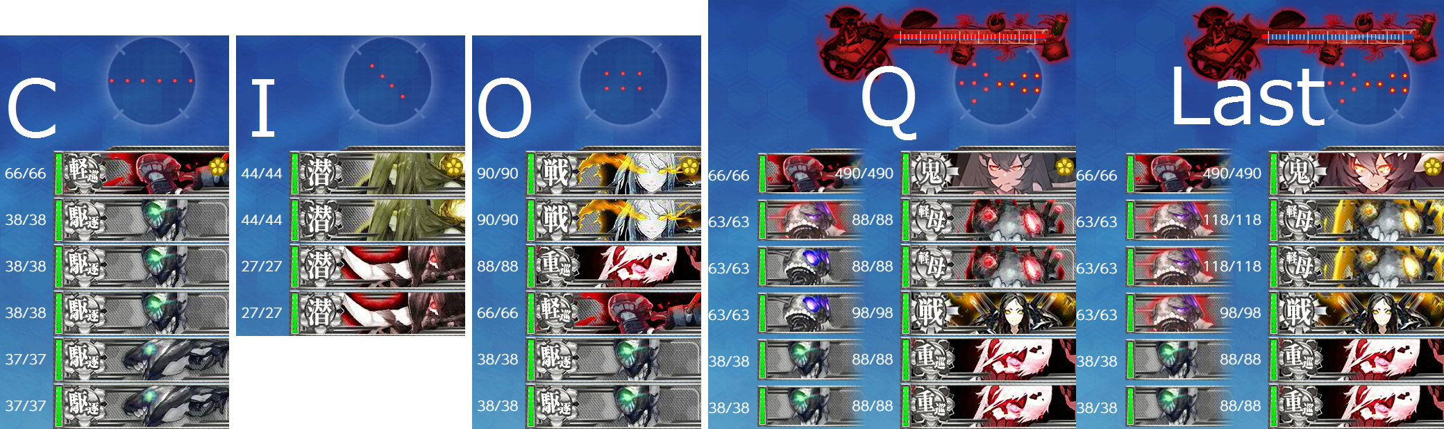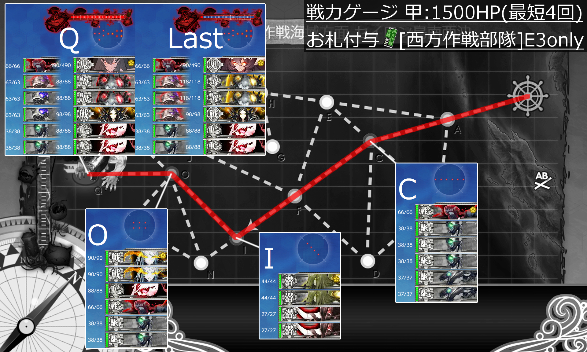 √固定法は第一段階と同じく【大型艦(戦艦+空母)3↓+索敵値】という感じでしょうか。