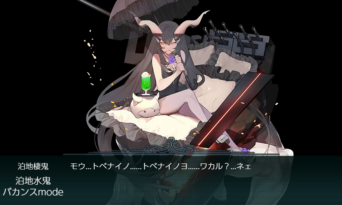 "泊地水鬼(バカンスmode)"は装甲値270/290と第二段階の時点で"戦艦仏棲姫(256/270)"より硬かったり(・◇・)