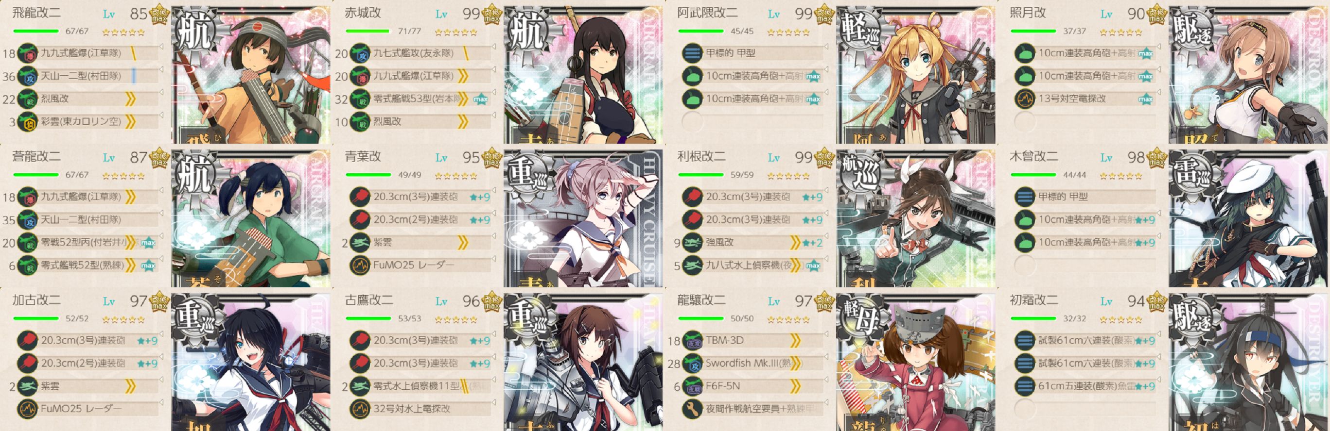 ちなみに「阿武隈/照月/利根/木曾」はサブなので1人しか育ててない提督はここで使って良いかよく考えましょう。