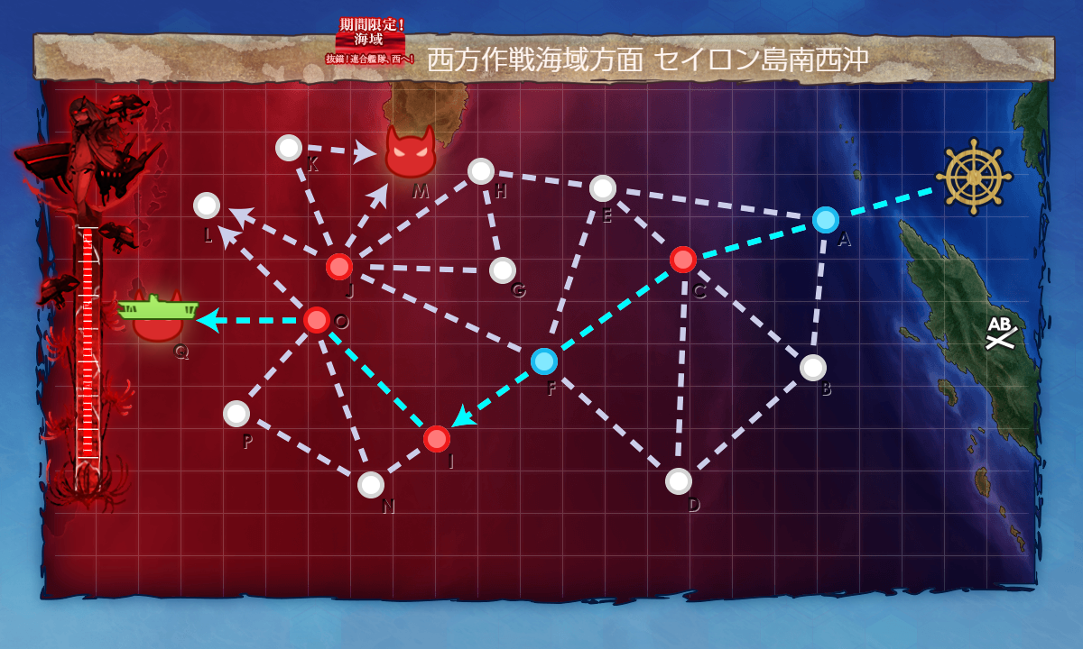 ボス(Q),[第四陣形]硬いので撃破するのはなかなか大変ですが基地航空隊もありますし削るのは簡単なはず。