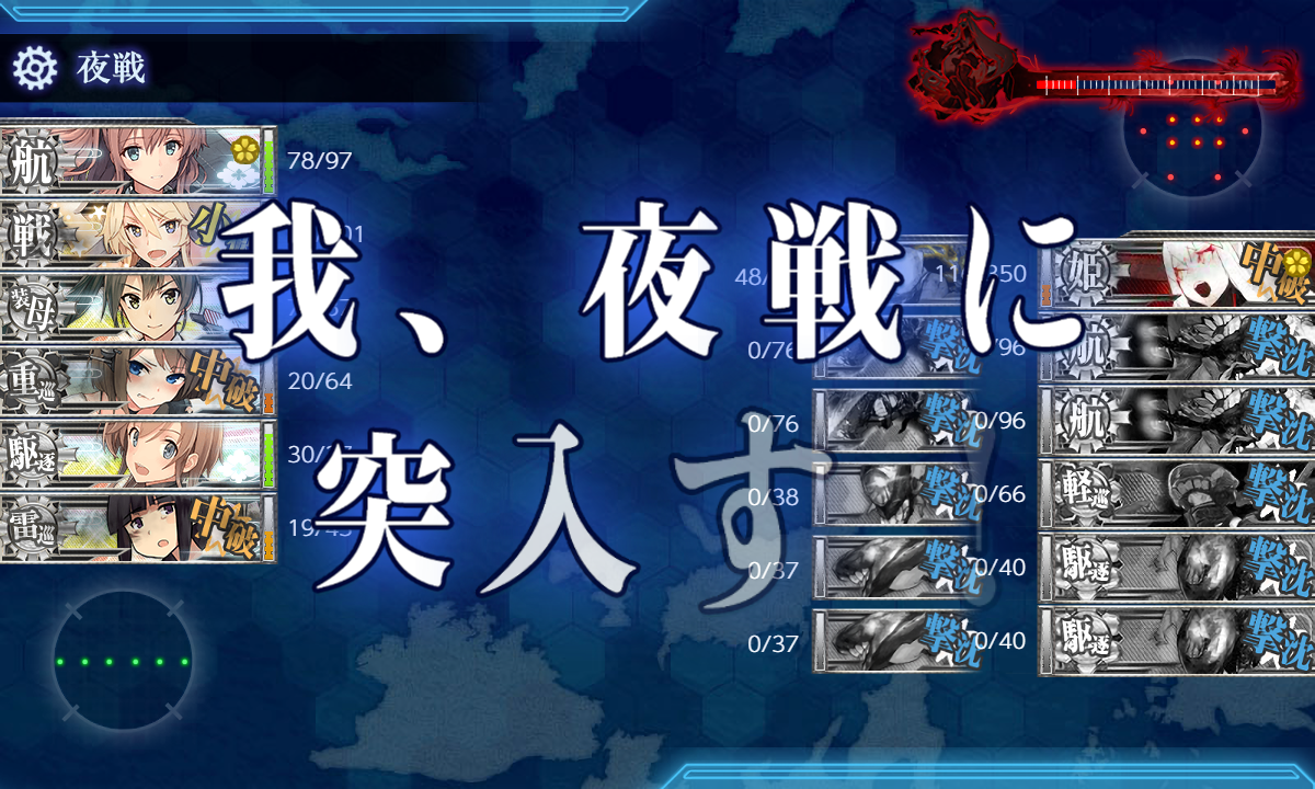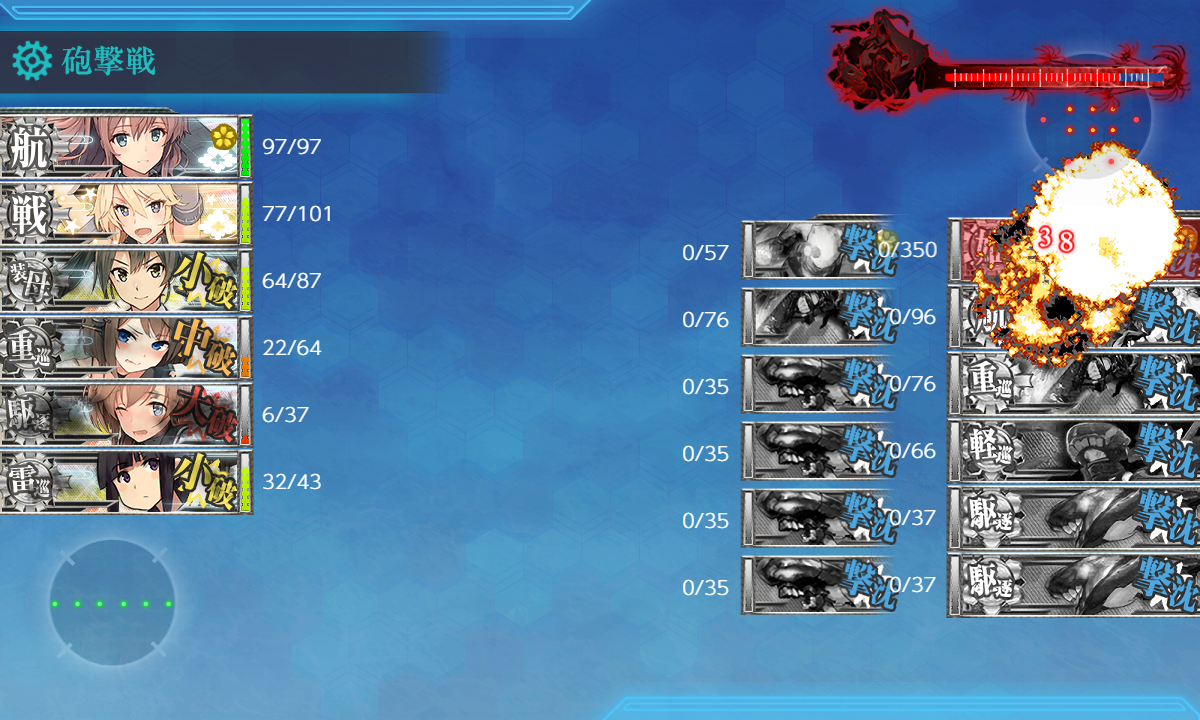 まぁこの編成なら到達した時点でまず"空母棲姫"を撃破出来るようになったのでしょぼくても良いんですが。