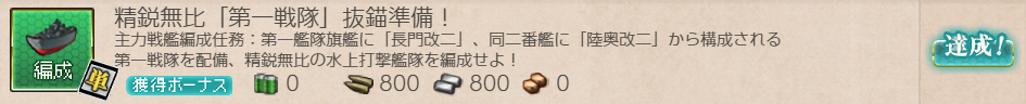 旗艦「長門改二」+2番艦「陸奥改二」を編成すると達成。