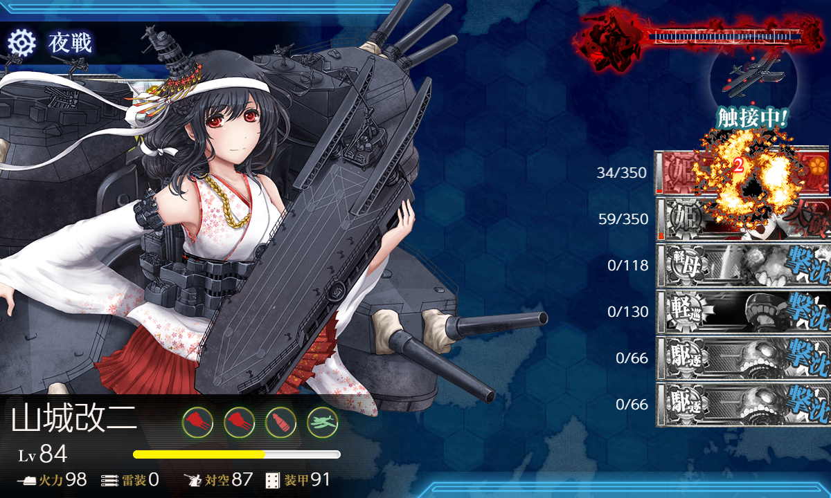 削り段階から大和(2号)・武蔵(2号)・Warspite(2号)による重量編成で突っ切ったため、E-1突破時点と比べて、燃料弾薬が各2万ほども消し飛んでしまいました… lllorz 本当にE-2かここ…