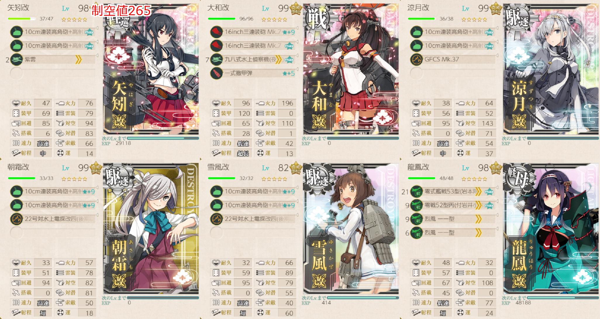 純正坊ノ岬沖海戦艦隊を組もうかとも思ったんですがもう「龍鳳」にお札付いてますし軽母入り編成。
