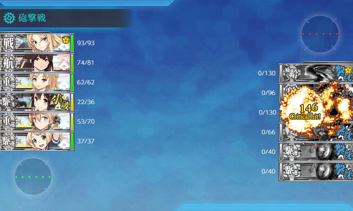 ボス戦陣形を複縦にすることでボスS勝利。 後わざとらしい位、ボス戦での不利が多かったので彩雲を入れた方が良いかも。
