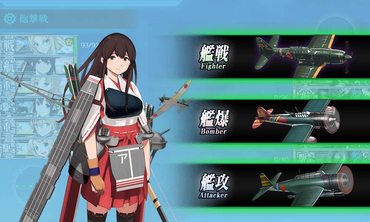 ゲージ破壊後の状態であれば上位艦戦(対空12↑)+上位水戦(★0でも可)で航空均衡(制空値120↑)になります。