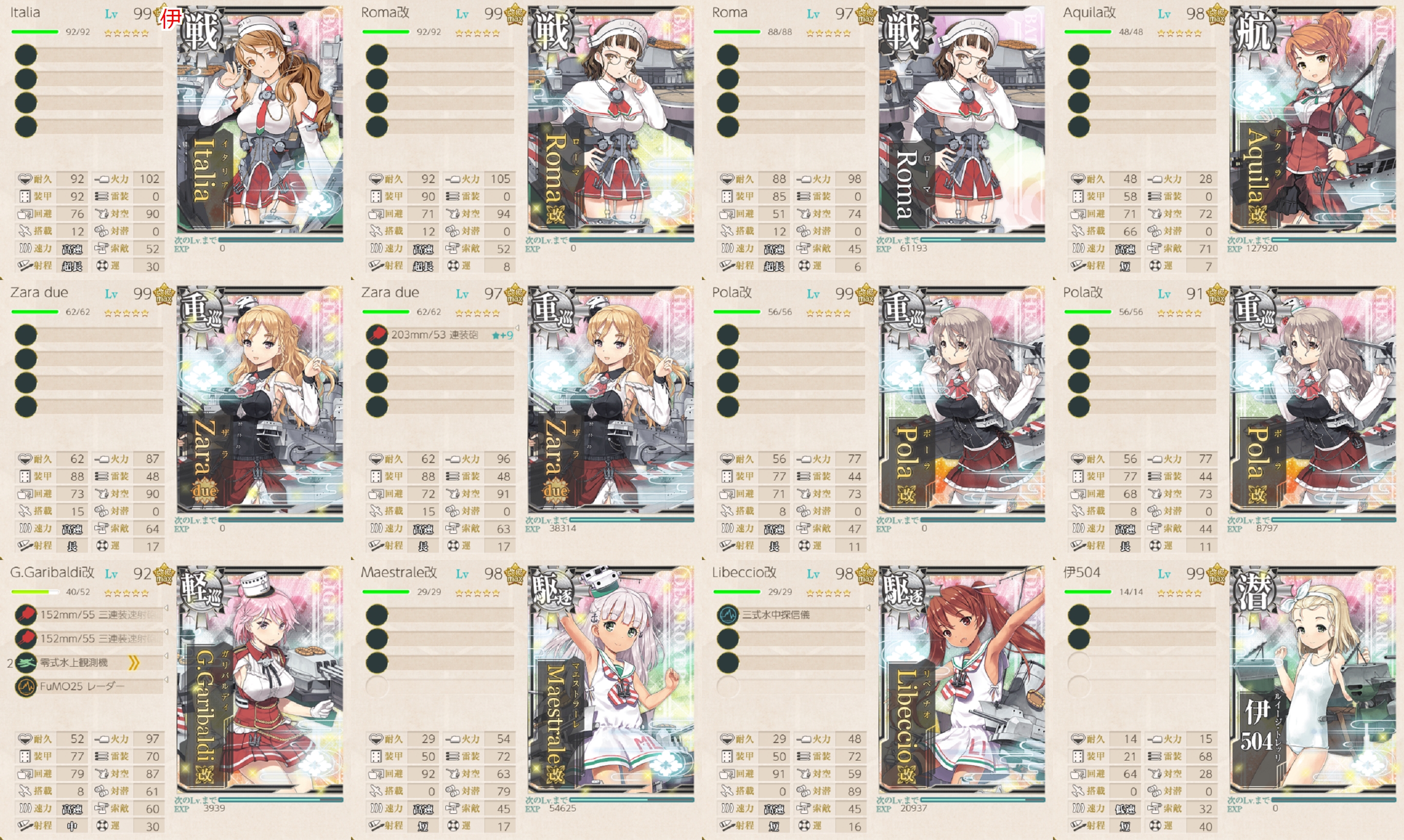 「Roma」のサブは必要そうなら改造するかも(・◇・)「Zara/Pola」が2人ずついるので余裕はあるはず。