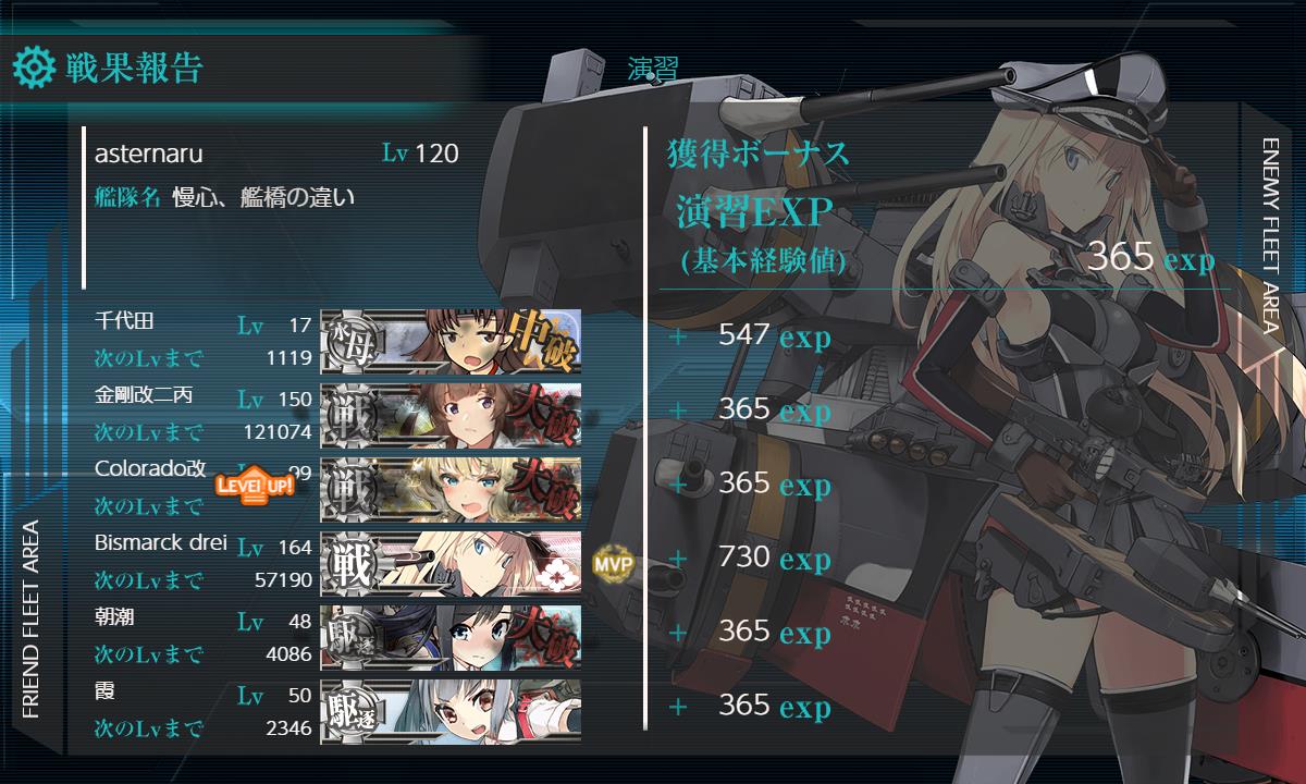 大破しながらLv upというちょっとレアなカンスト(º﹃º)