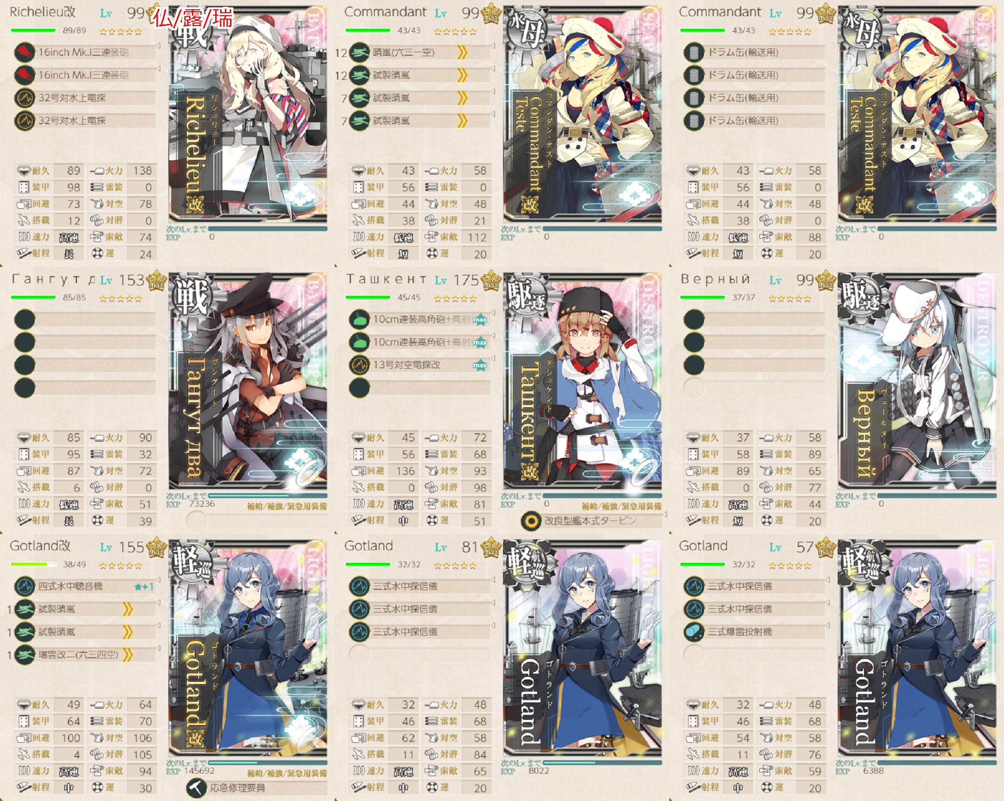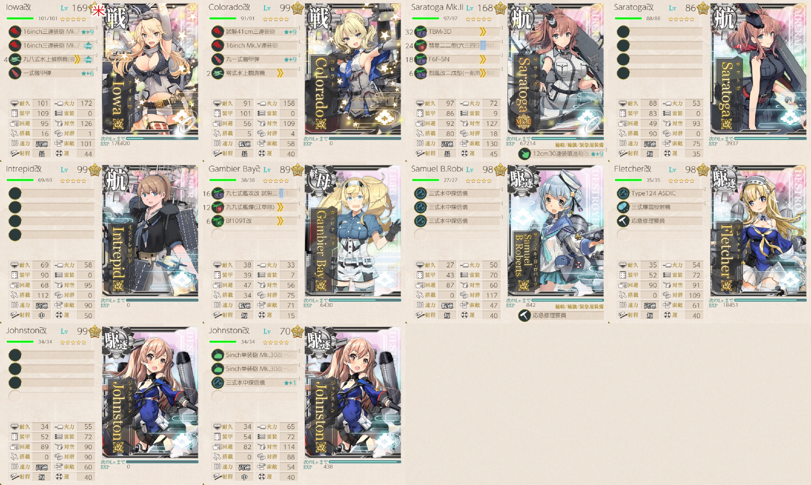 夏イベントも近づいてきてますし手持ちの海外艦娘がどれぐらい育ってるかを確認するためにもまとめていきます。提督の皆さん、お疲れさまです!