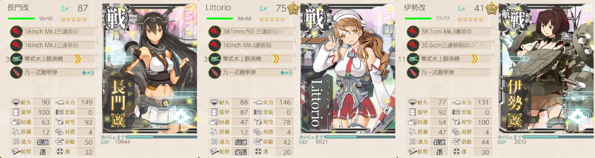 「長門」のゴールは見えてますが「Littorio」は引き続き育成。と言っても必要に迫られなければ改造する予定はないので