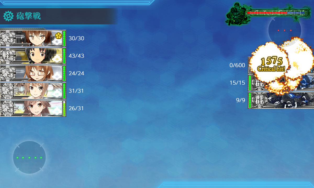 特筆する点なし(・◇・)対地が刺さったら終わり。1回目の「満潮」中破がなければ4回ともほぼ完全勝利だったんですが。